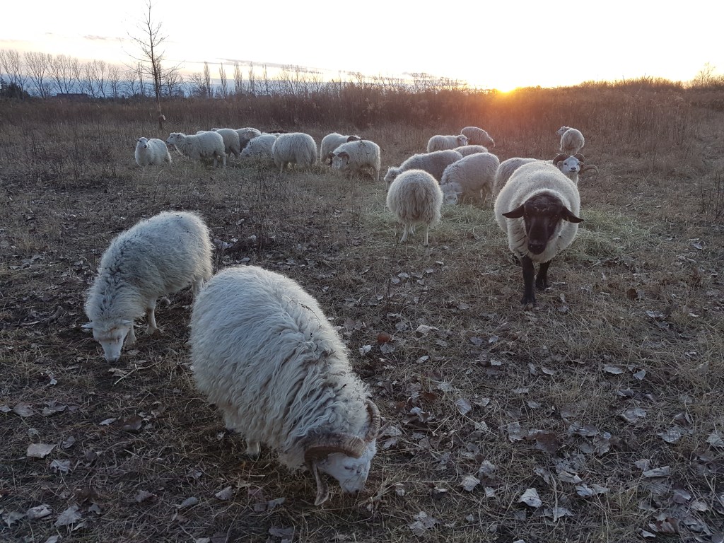 Um, die teilweise noch nicht eingerichteten Flächen auf eine Beweidung mit unseren verwöhnten Pferden vorzubereiten, haben uns zum Glück Schafe geholfen. Die Flächen wurden weitgehend von Landreitgras und Kanada-Goldrute dominiert – was die Pferde bislang verschmäht haben. Die Schafe haben die Dominanzbestände jedoch schön aufgelichtet und die alte Streu teilweise mit ihren kleinen Hufen eingearbeitet.