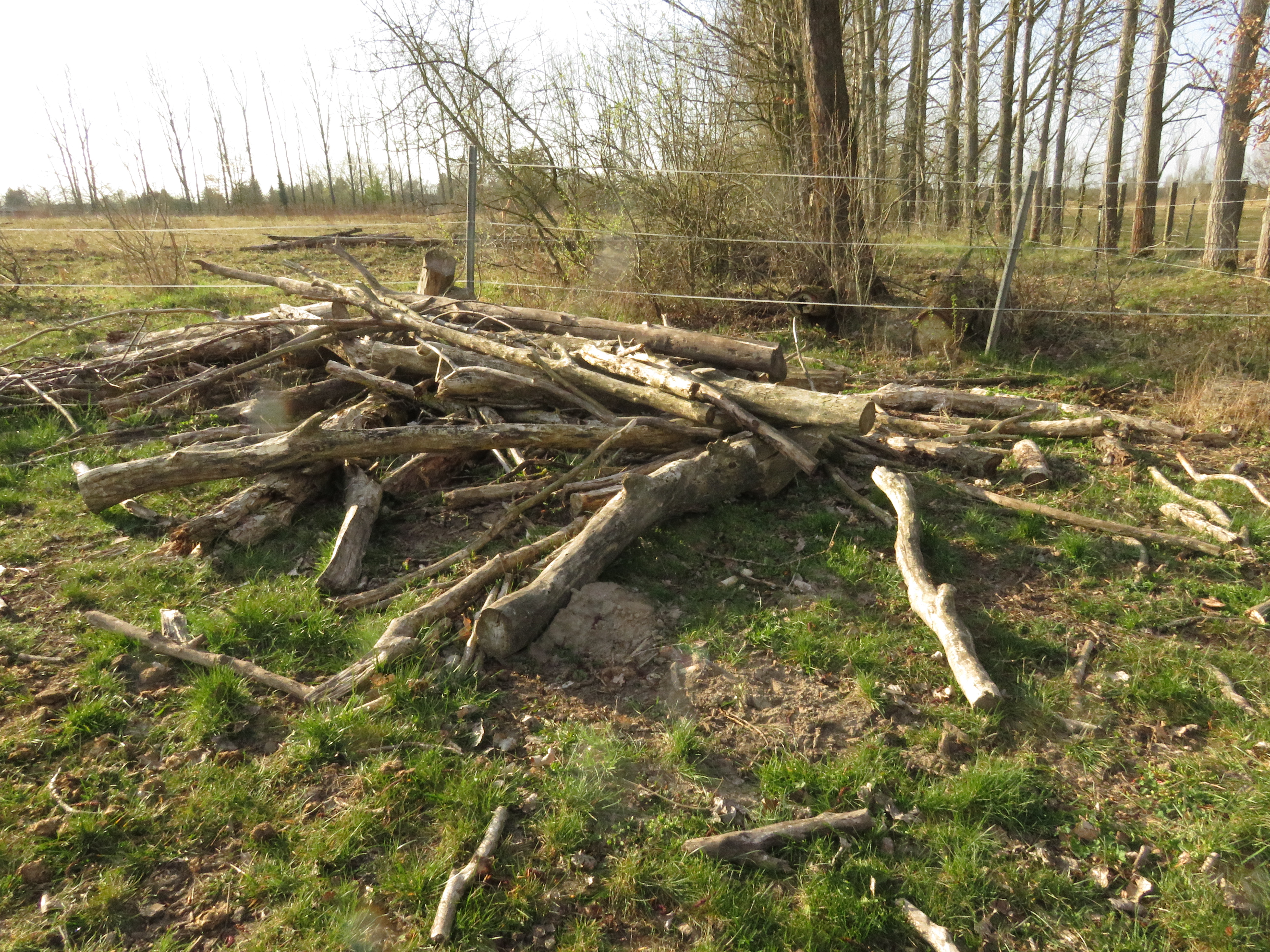 Wir haben auch bereits einige Totholzhaufen, die ich gern liegen lasse, damit Vögel darin brüten können, Igel im Winter ein Zuhause oder Zauneidechsen ein Versteck finden. Abgestorbene Pappeln, die zu einem Haufen aufgeschichtet wurden oder Abschnitt findet sich immer, um Lebensraumstrukturen zu schaffen.