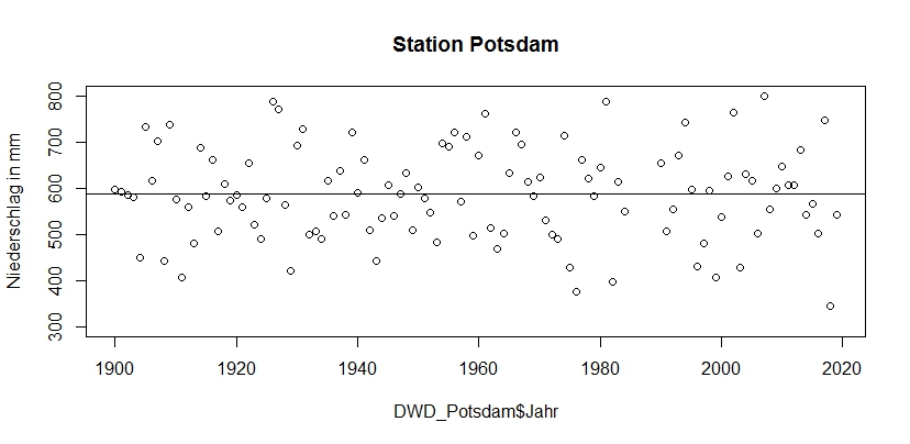 Das langjährige Mittel liegt für die Station Potsdam bei 587mm und die trockensten Jahre waren: