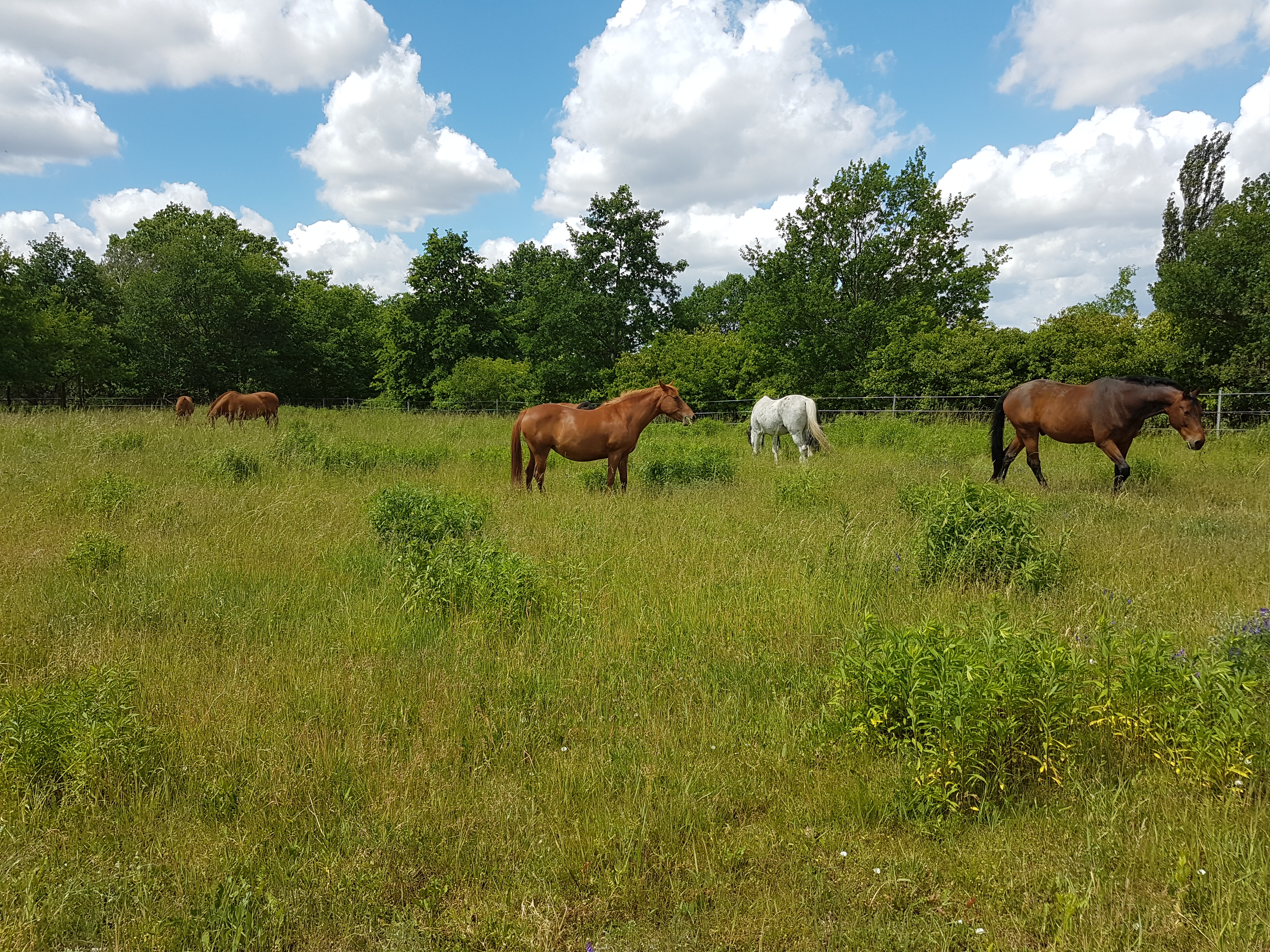 Der Plan war so schön ausgedacht: im Winter die Schafe, im Frühjahr noch mal abschleppen und dann bei Erreichung der richtigen Vegetationshöhe, (also Bierflaschenhöhe) die Pferde auf die Fläche, teilweise Mahd Anfang Juni. Dann mit der Beweidung rotieren, also die Pferde umkoppeln nach dem Prinzip der Portionsweide. Auf diese Weise sollte man immer Flächen haben, die sich erholen können und frische Flächen zum abweiden. So weit so gut.