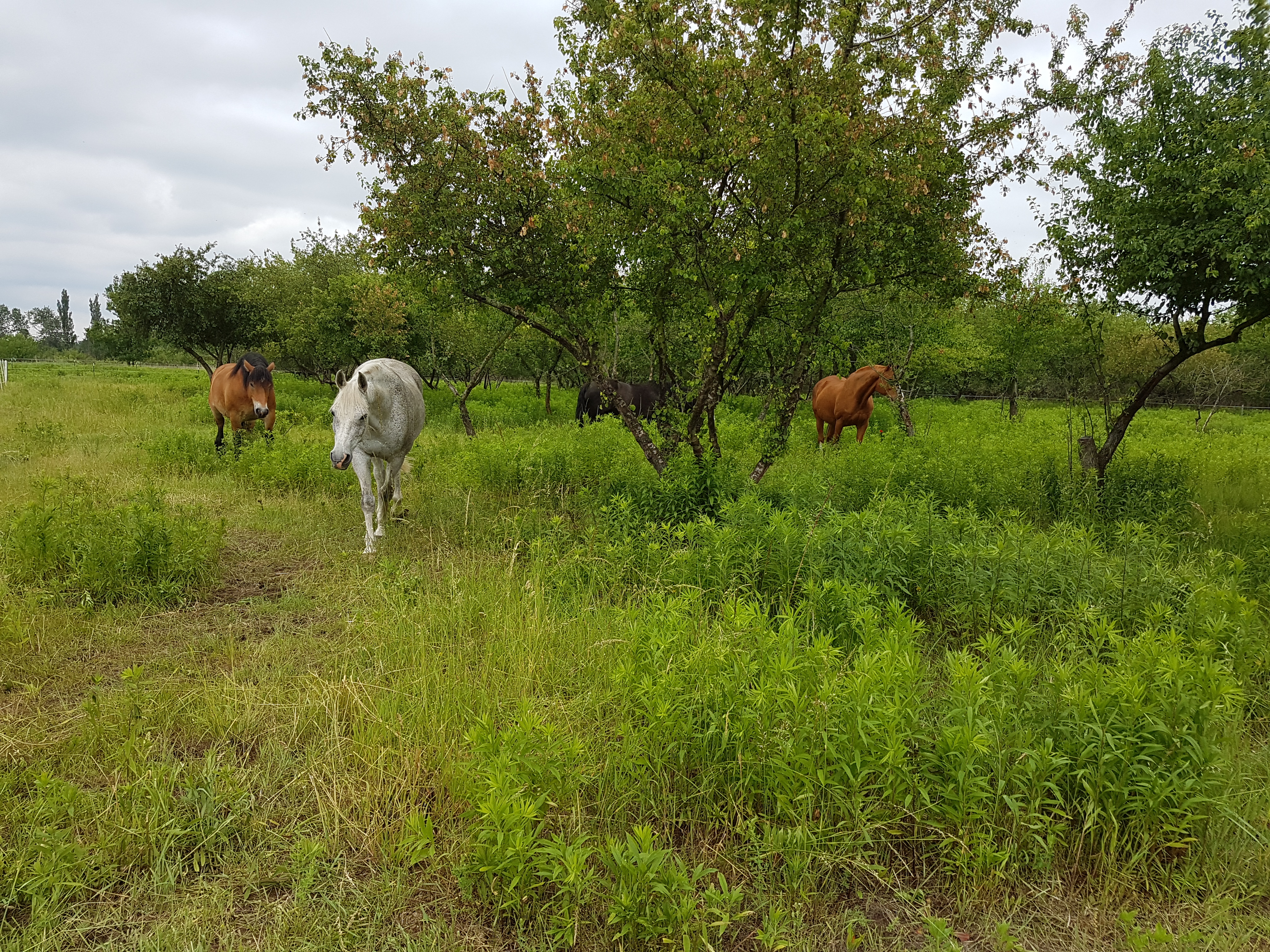 Aber dann kamen lauter Umstände zusammen, die es unmöglich machten, den Plan umzusetzen. Beispielsweise ein krankes Pferd, das nicht mit der Herde laufen kann, aber auch nicht allein zurück bleiben kann. Ein Landwirt der nun nicht mähen kam, obwohl es so lange schon verabredet war. Es kam aber auch Regen dazwischen, den ich ja grundsätzlich begrüße, aber beim Heu machen dann doch schwierig ist. Nun wurde zumindest eine Fläche gemäht und ich hoffe, dass sie auch beräumt wird, es ist und bleibt ein ständiges Bangen und Hoffen.