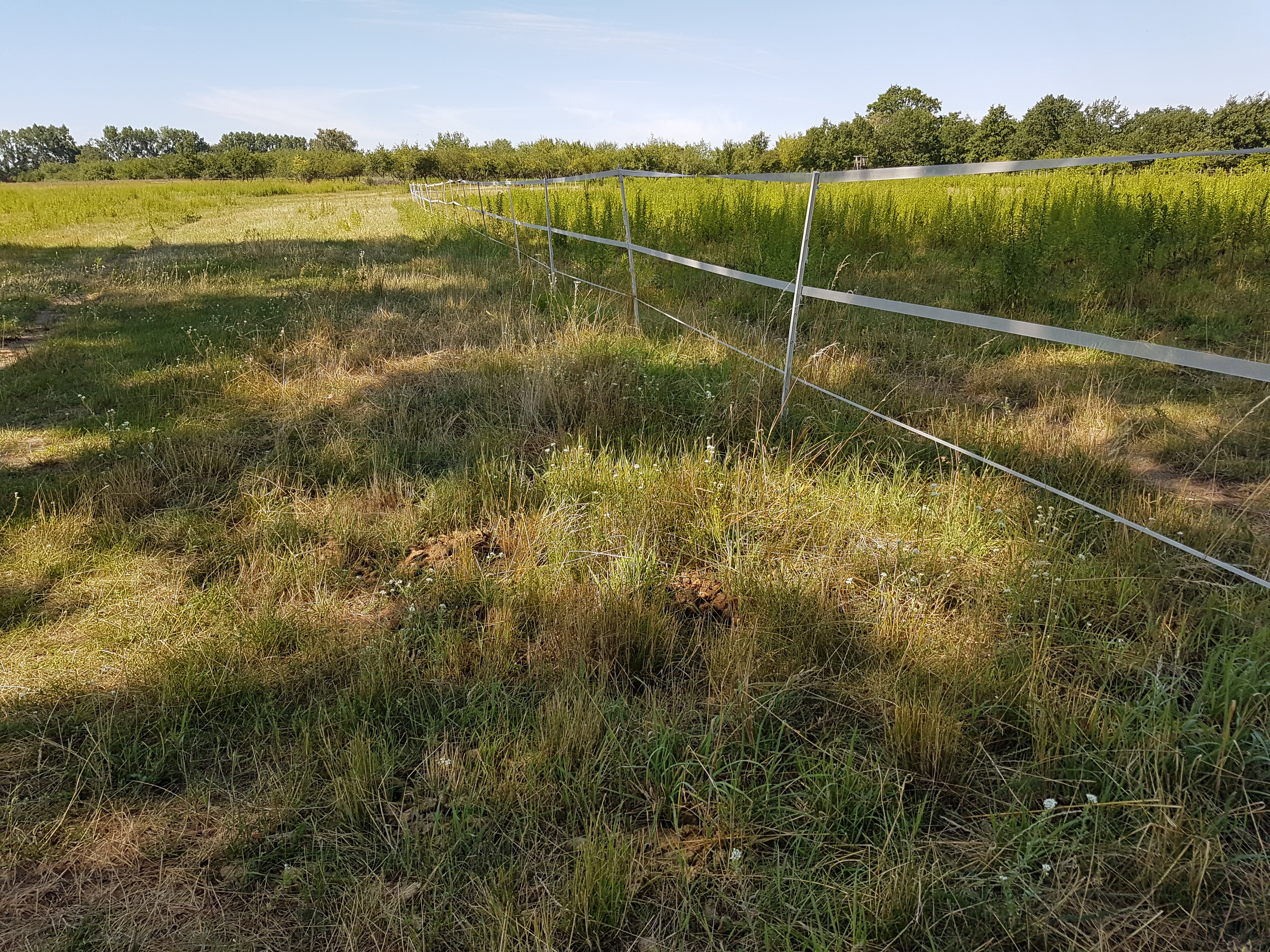 Ein Abweiden wäre mir lieber gewesen oder wenigstens eine Mahd, aber leider bekommen wir ohne Mulchen die Kanada-Goldrute nicht in den Griff. Die Pferde fressen die Kanada-Goldrute nicht und wir haben ja auch das Luxusproblem, dass wir zu wenig Pferde für zu viel Fläche haben. Als Mahdgut ist es auch ungeeignet, höchstens als Einstreu und die Schafe haben nun wirklich ihr bestes gegeben. Aber die Goldrute kommt in den ersten Jahren der „Bekämpfung“ immer wieder und da heisst es jetzt dran bleiben….