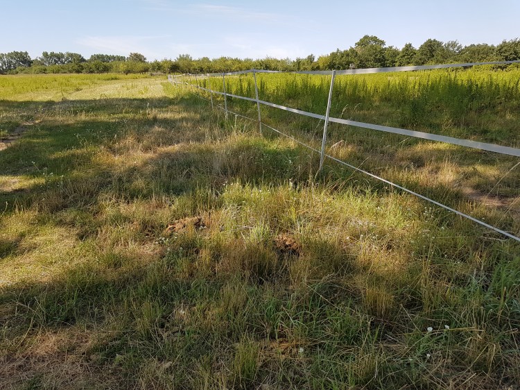 Über den Winter hatten wir die Skudden, welche die Goldrute ganz gut abgefressen haben und alles schön kurz gehalten haben. Im Frühjahr kamen dann die Pferde auf diese beiden Weiden und im Juli habe ich die Flächen gemulcht. Das Mulchen war ja leider etwas nach hinten losgegangen, wie bereits in dem Beitrag „Verbrannt“ beschrieben. Es blieb nichts anderes übrig als mit der Zufütterung von Heu zu beginnen, was eigentlich erst für Oktober geplant war. Mit den Niederschlägen Anfang September ist jedoch innerhalb kurzer Zeit alles wieder grün geworden und wir konnten die Pferde wieder auf diese beiden Weiden lassen.