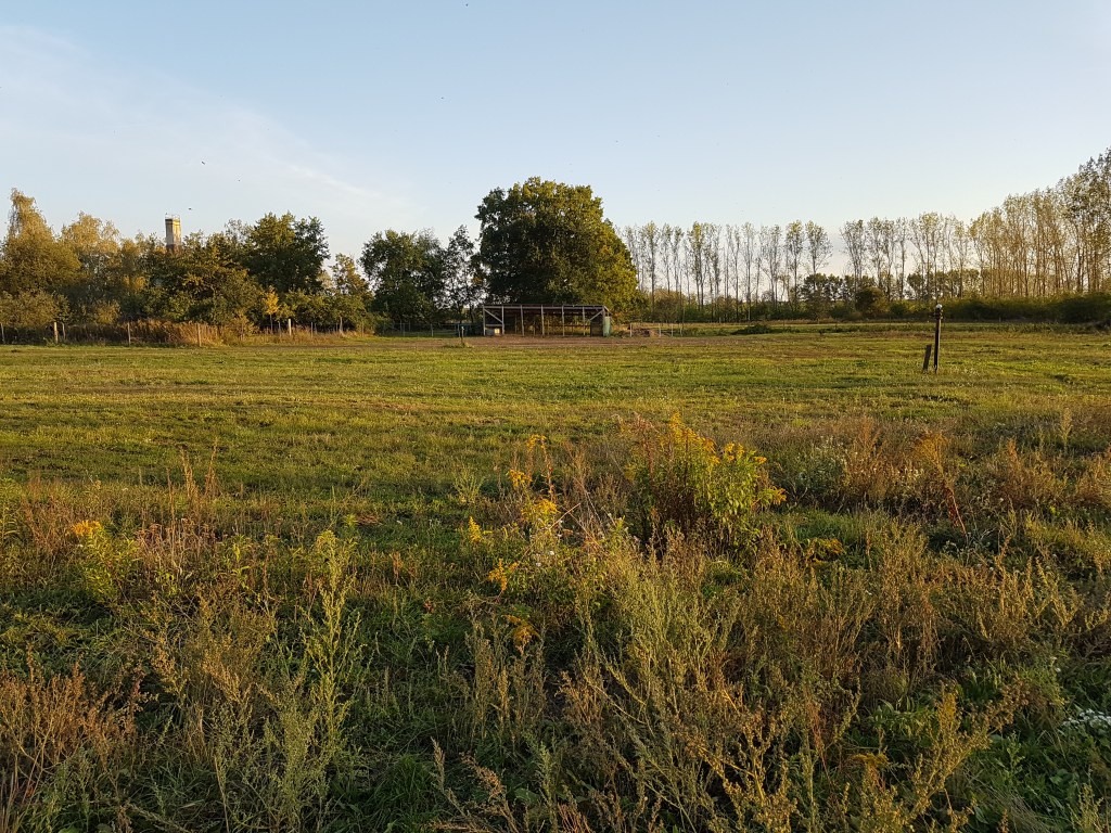 Als erstes kommen Fotos der Hauptwiese, denn sie ist die größte Herausforderung. Diese Fläche ist die am stärksten durch Beweidung, Verbiss, Tritt und Kot beanspruchte Weide bei uns. Hier haben wir auch das größte Problem mit der Graukresse. Die Übernutzung dieser Fläche hängt ganz einfach mit der Infrastruktur zusammen, denn hier steht der Unterstand und hier ist die Tränke. (Nur die relativ kleine „Dreieckswiese“ hat noch eine eigene Tränke und einen Unterstand). Außerdem ist es am praktischsten, wenn hier die Heuraufen stehen, weil man hier Licht vom Reitplatz und die geringste Entfernung zur Mistplatte hat.