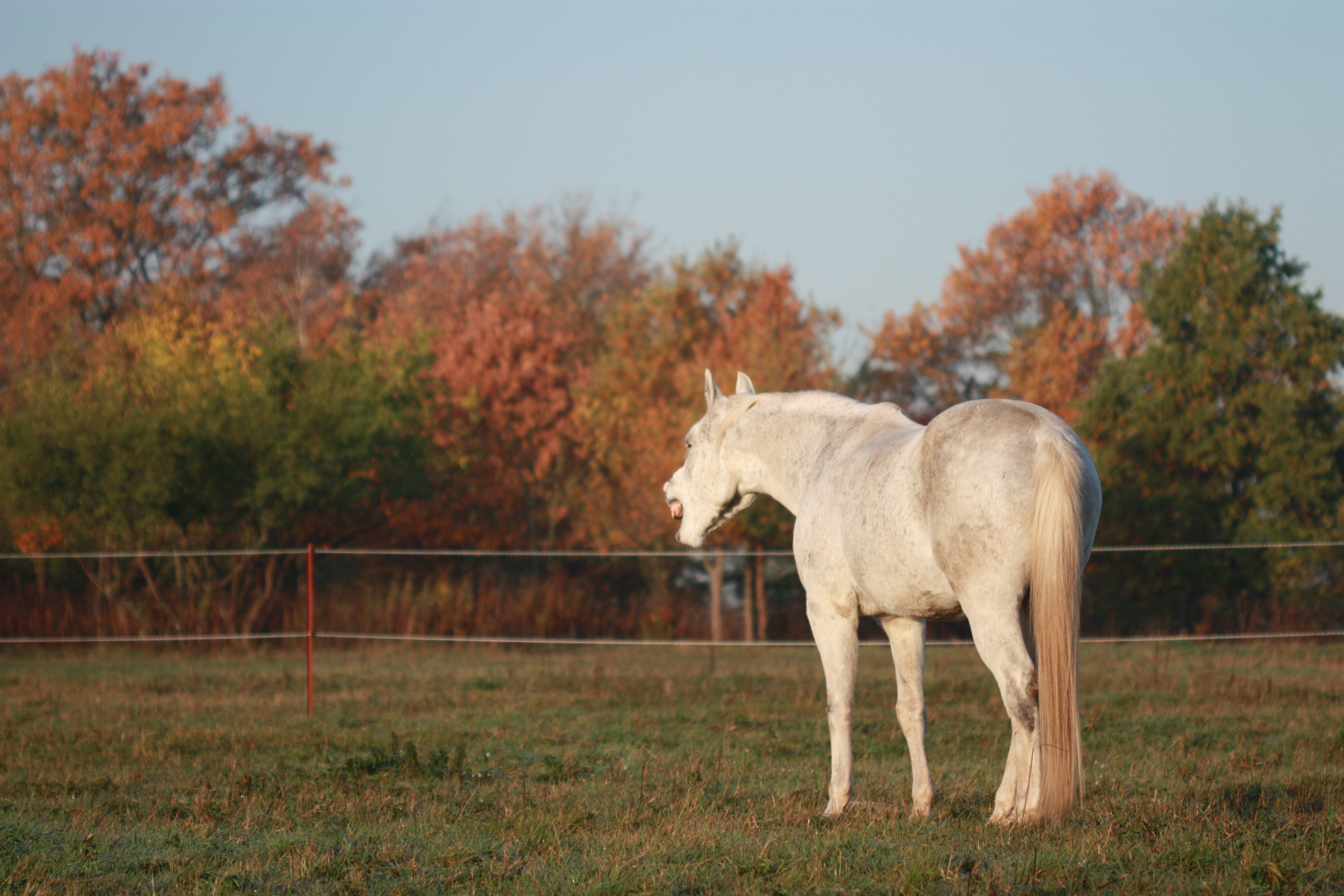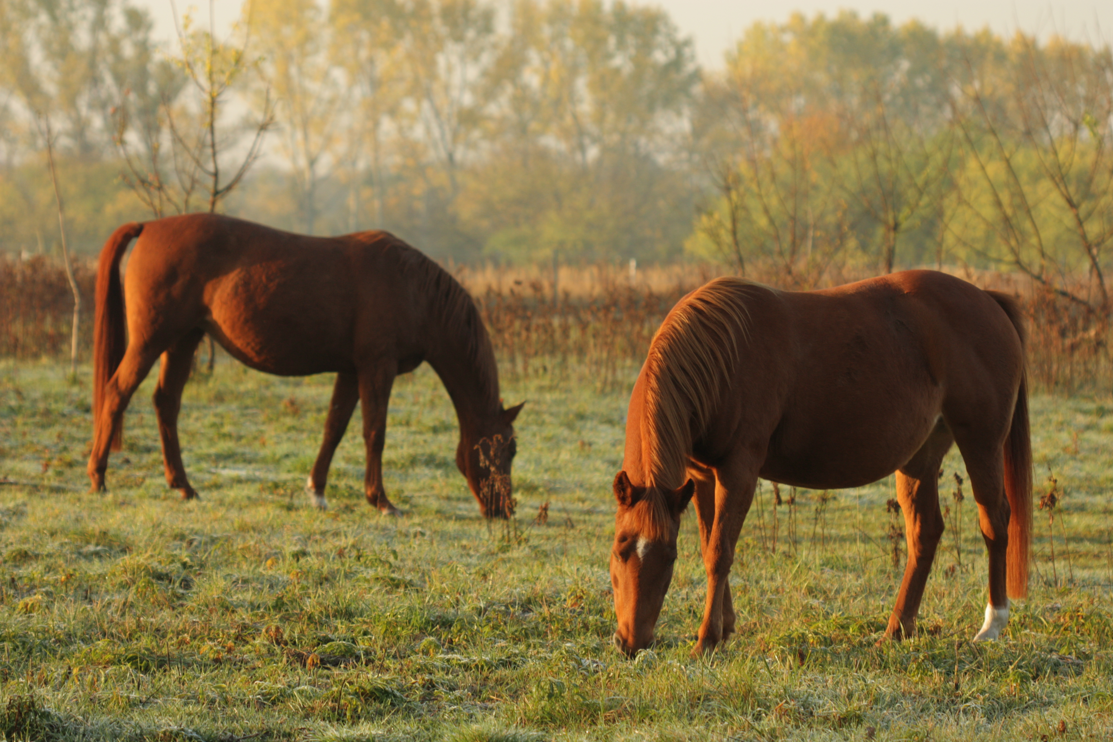Heute morgen gab es ein wenig Frost und es ist einfach wunderbar, morgens über die Weide zu laufen, wenn alles noch still ist, die Sonne aufgeht und die Pferde friedlich grasen.