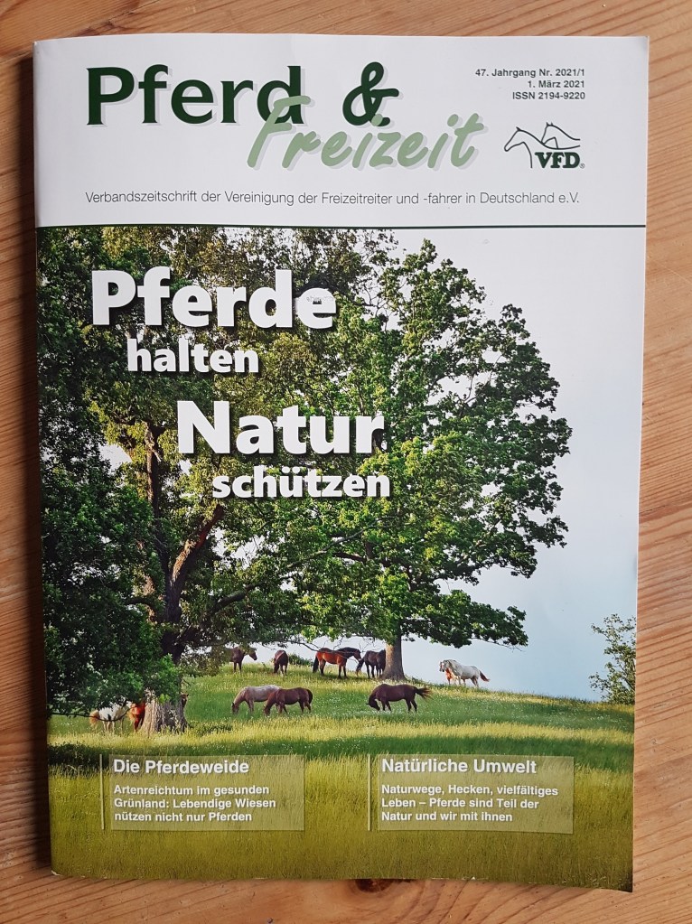 Das aktuelle Heft der Verbandszeitschrift „Pferd & Freizeit“ der VFD widmet sich dem „Thema Pferde halten – Natur schützen“ und zeigt Wege auf, wie sich Pferdehalter ihrer Verantwortung für den Naturschutz stellen können. In guten Beiträgen werden komplexe Zusammenhänge auf den Punkt gebracht und konkrete Anregungen für eine artgerechte Pferdehaltung, gesunde Weiden als Futtergrundlage und dem Schutz der Artenvielfalt aufgezeigt.