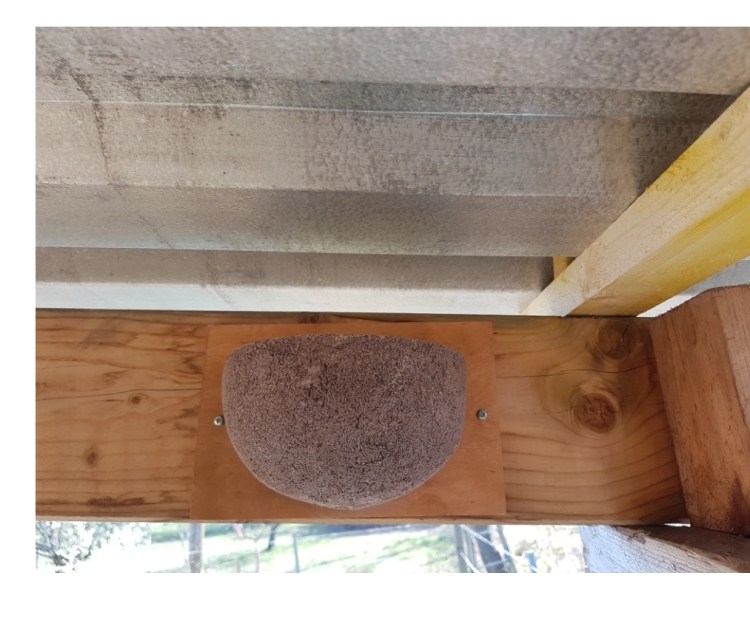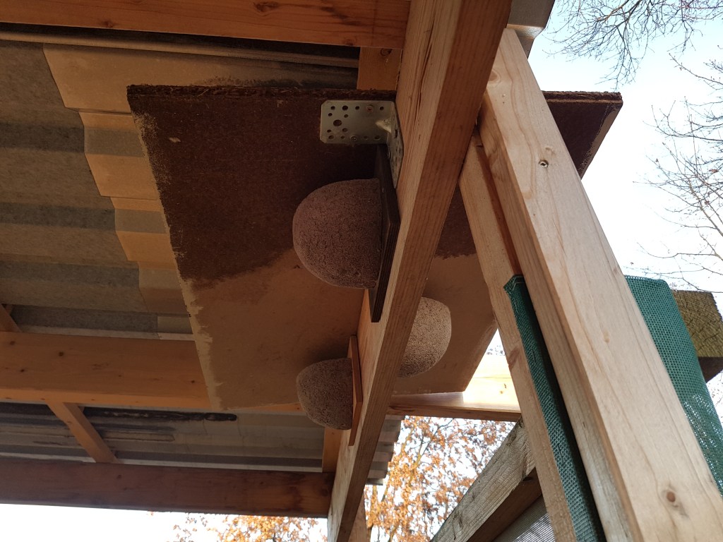 Bereits im letzten Frühjahr habe ich deshalb eine künstliche Nisthilfe am Unterstand angebracht. Diese Nisthilfe wurde allerdings nicht angenommen, weil der Standort wohl zu zugig und zu wenig „höhlenähnlich“ war…