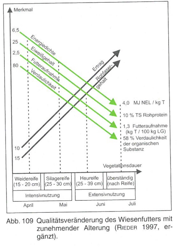 Denn theoretisch wird das Wiesenfutter nach einem Grasberg und der Samenreife im Juni zu reiner Rohfaser bzw. „Heu auf dem Halm“. Überständige Vegetation ist zwar super aus naturschutzfachlicher Sicht, aber ich wollte gern, dass die Pferde bis zum Herbst von der Weide leben können, bevor man wieder Heu zufüttern muss. Vor allem aus ökonomischen Gründen, denn Heu ist der größte Kostenfaktor…