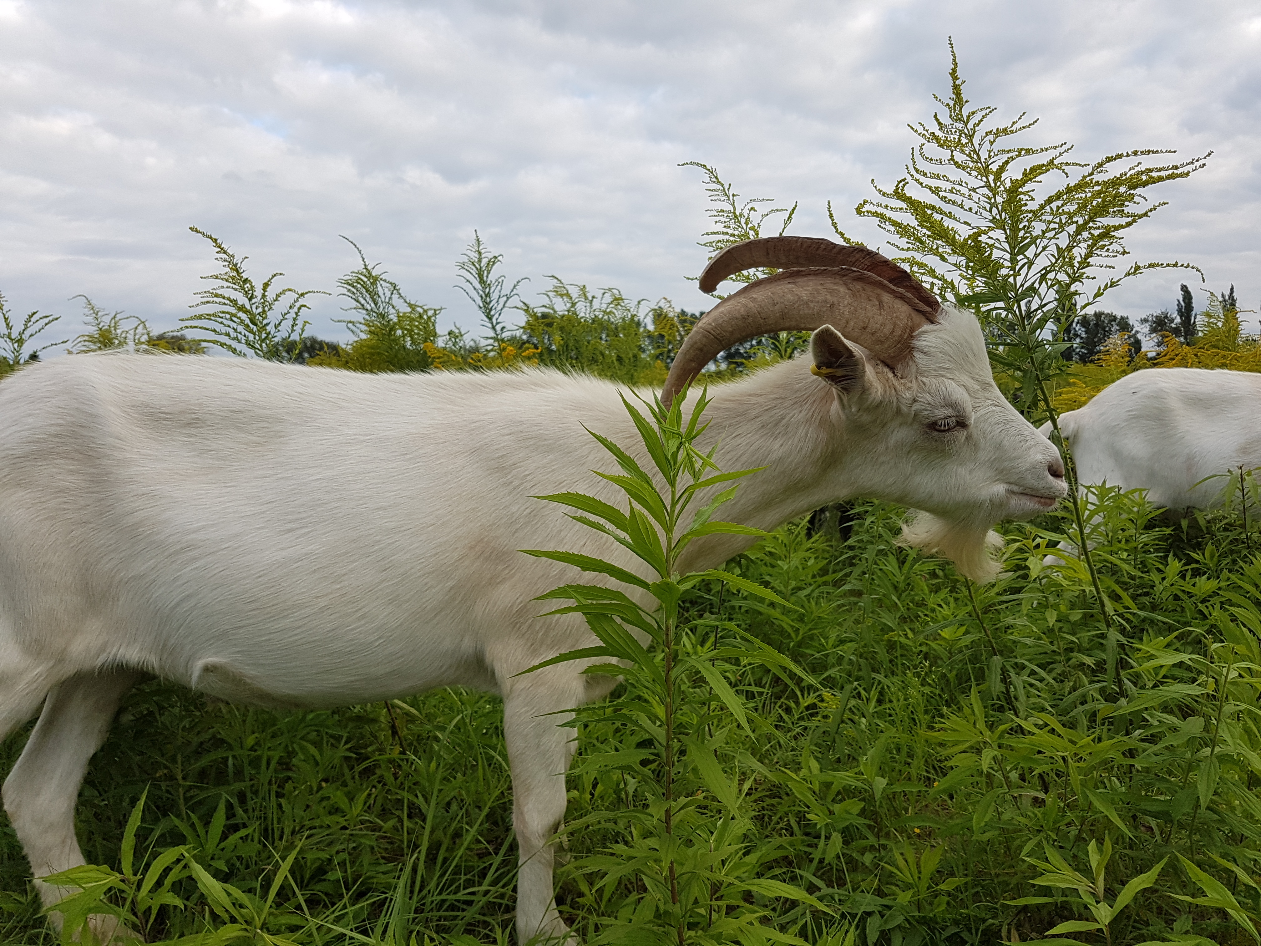 Die Flächen waren lange verbracht und die Pferde fressen die Kanada-Goldrute nicht, sondern selektieren nur die Gräser raus. Mit dem selektiven Fraß werden die Konkurrenzverhältnisse für unbeliebte Pflanzen auf der Weide wie Giftplanzen oder Sauerampfer etc. noch weiter begünstigt. Aus diesem Grund ist es gut, wenn man die Möglichkeiten hat, die Flächen zu mähen, zu mulchen oder mit anderen Weidetieren zu pflegen. Aber nicht nur deshalb ist es mir eine besondere Freude, den Schafen und Ziegen beim Naschen zuzuschaun. Sie sind auch einfach herzig 🙂