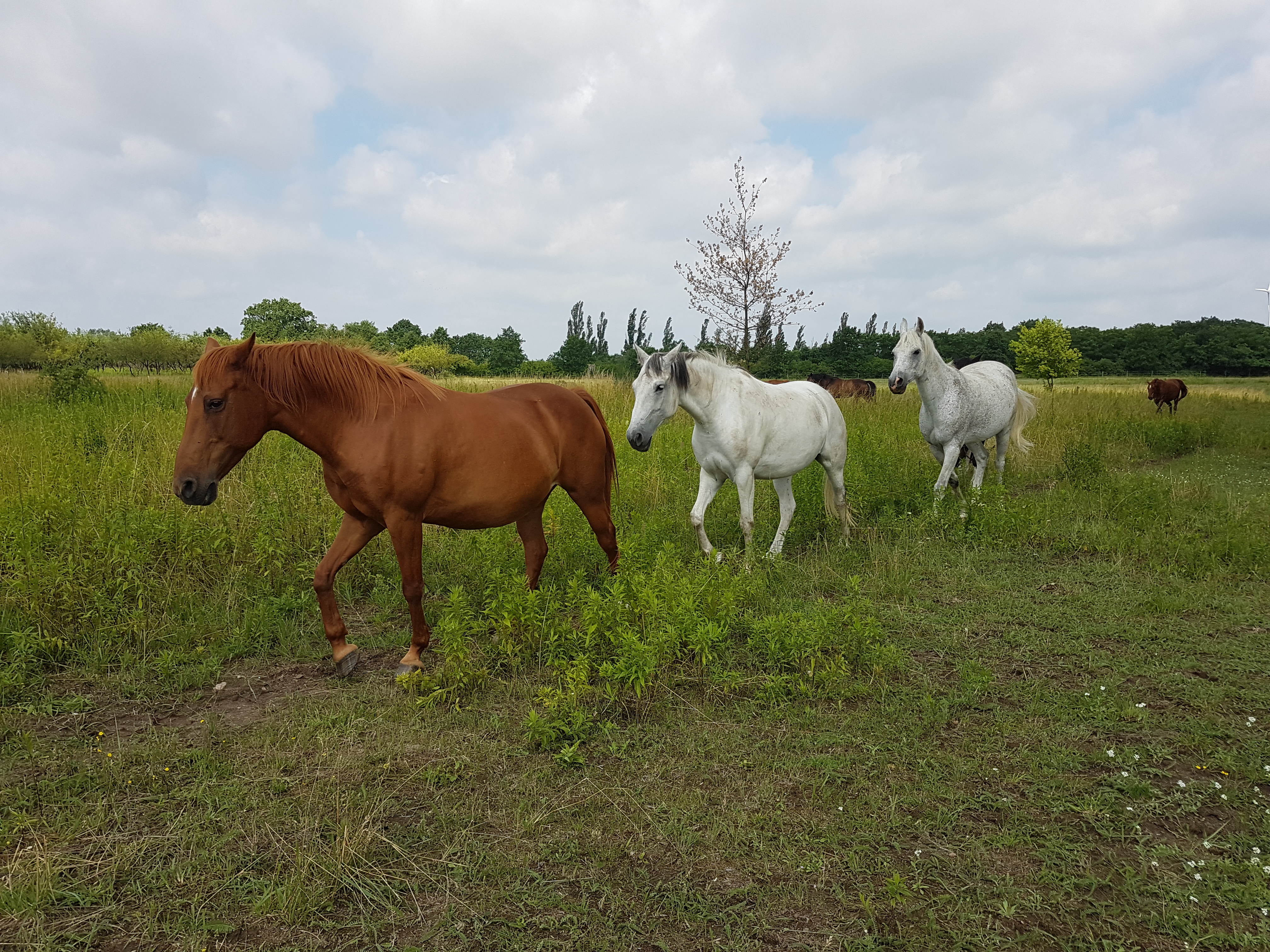 Es gibt sicherlich sehr viele gute Konzepte zur Haltung von Pferden mit der Anlage von Laufställen, Aktivställen, Trails, Paddock Paradise etc. , um das natürliche Verhalten zu imitieren und Bewegungsanreize auch auf kleinem Raum zu schaffen. Aber ich kann zumindest für Assan sagen, dass er einfach hinreichend Fläche zum grasen braucht, um sich zu bewegen. Einfach die Möglichkeit zu haben gemeinsam mit der Herde zu grasen, im Schatten zu dösen, sich zu wälzen, zu schubbern und mit seinem besten Kumpel zu spielen – das ist aus meiner Sicht artgerecht ohne den natürlichen Bewegungsdrang der Pferde unnötig zu verkünsteln.