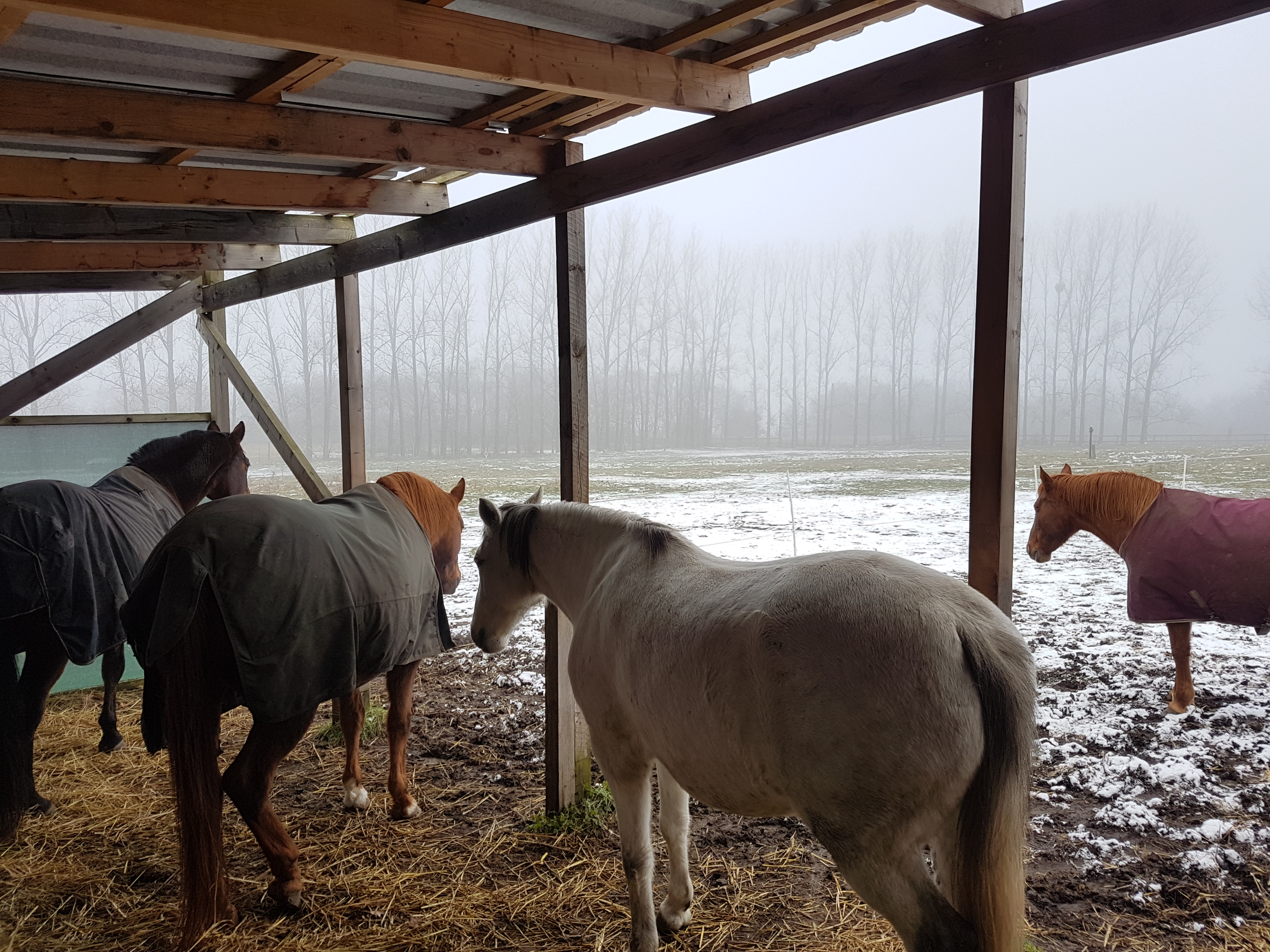 Aber wie auch immer, letztes Wochenende haben wir die „klassische Nikolaus-Entwurmung“ (ohne vorherige Kotproben) gegeben, um die Entwicklung der Dasselfliege zu unterbinden und mit Equimax auch ein Mittel (Wirkstoff Praziquantel) gegen Bandwürmer zu geben, welche man wohl nur als Zufallsbefund mit Kotproben nachweisen kann. Dafür haben wir die Pferde wieder in ihrer Freitheit eingeschränkt, enger gekoppelt und alle Pferdeäppel entfernt.