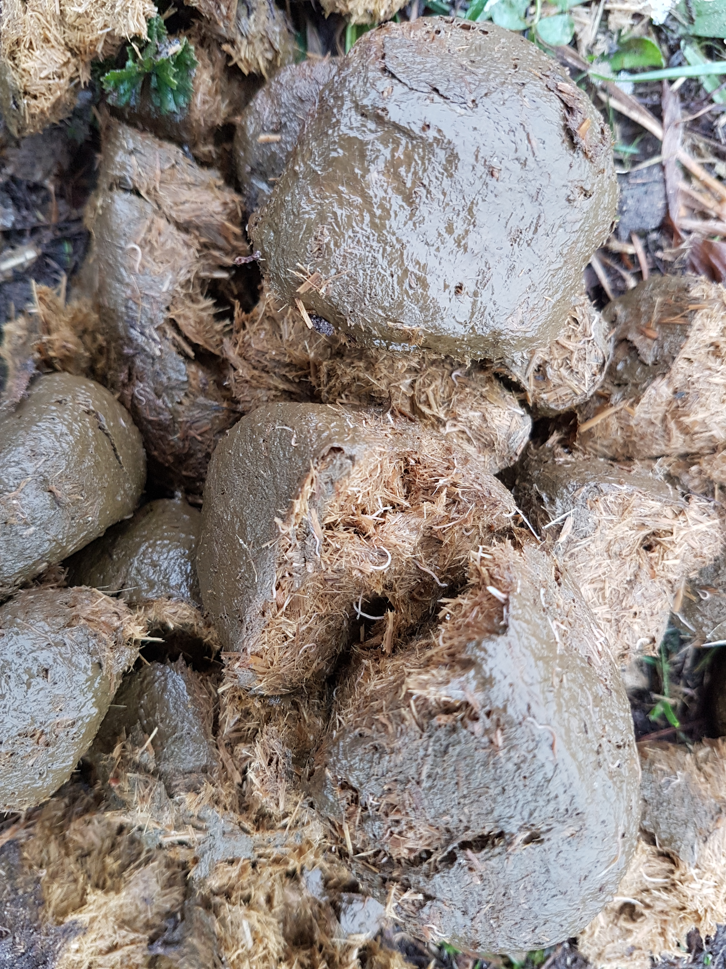 Bei ziemlich vielen Haufen, definitv auch einem von Assan konnte man viele, kleine, weiße Würmer sehen, teilweise noch lebend. Nach Expertenmeinung handelt es sich sehr wahrscheinlich um die so genannten kleinen Strongyliden (Cyathostominen). Sie haben die Fähigkeit, sich als Larve in der Darmwand einzukapseln, d.h., wenn genug eierlegende Würmer vorhanden sind, können die Larven bis zu 3 Jahre ruhen und erst bei „Bedarf“ die Entwicklung zum ausgewachsenen Wurm fortsetzen… Diese eingekapselten Larven kann man wohl auch nicht mit dem gängigen Wirkstoff Ivermectin bekämpfen.