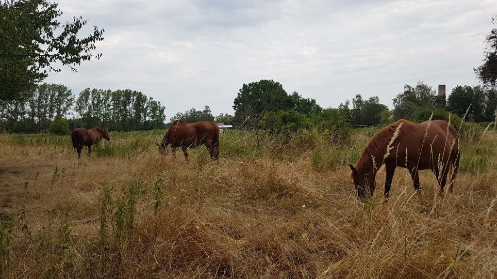 Schweren Herzens habe ich die Pferde nun auf unsere Winterkoppel gelassen, die eigentlich im Sommer geschont werden soll. Wie im letzten Beitrag beschrieben, haben wir nach zwei Jahren Pflege eine halbwegs vernünftige Grasnarbe wiederherstellen können, die nun wieder mehr beansprucht wird, als vorgesehen war. Es ist ja nichts so beständig wie die Planänderung und immer wieder muss man flexibel auf die sich ändernden Rahmenbedingungen reagieren. Um unsere Heureserven noch für den Winter zu schonen, lassen wir die Pferde noch mal auf allen Weiden rotieren, in der Hoffnung, die Heufütterung noch so lange es geht hinauszuzögern.