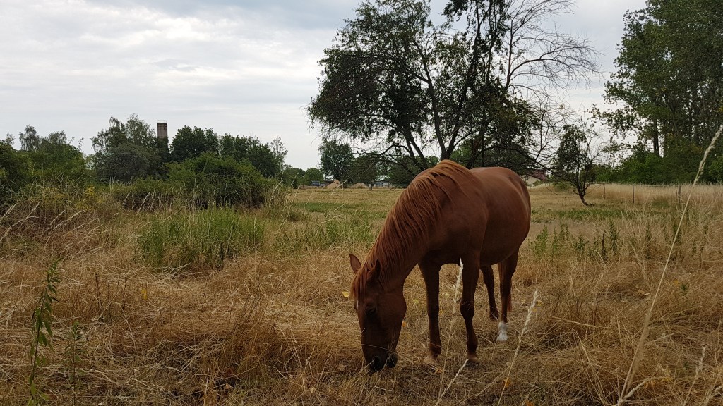 Aber dieses System funktioniert bei Dürre nicht mehr und vielleicht muss man es hinnehmen, dass die Pferde auch an den vertrockneten Pflanzen knabbern können, ohne gleich abzumagern. Schließlich sind sie wahre Wunder der Natur, beste Futterverwerter und können auch noch aus vertrockneten Pflanzen hinreichend Nährstoffe aufnehmen, wie man beispielsweise hier nachlesen kann.