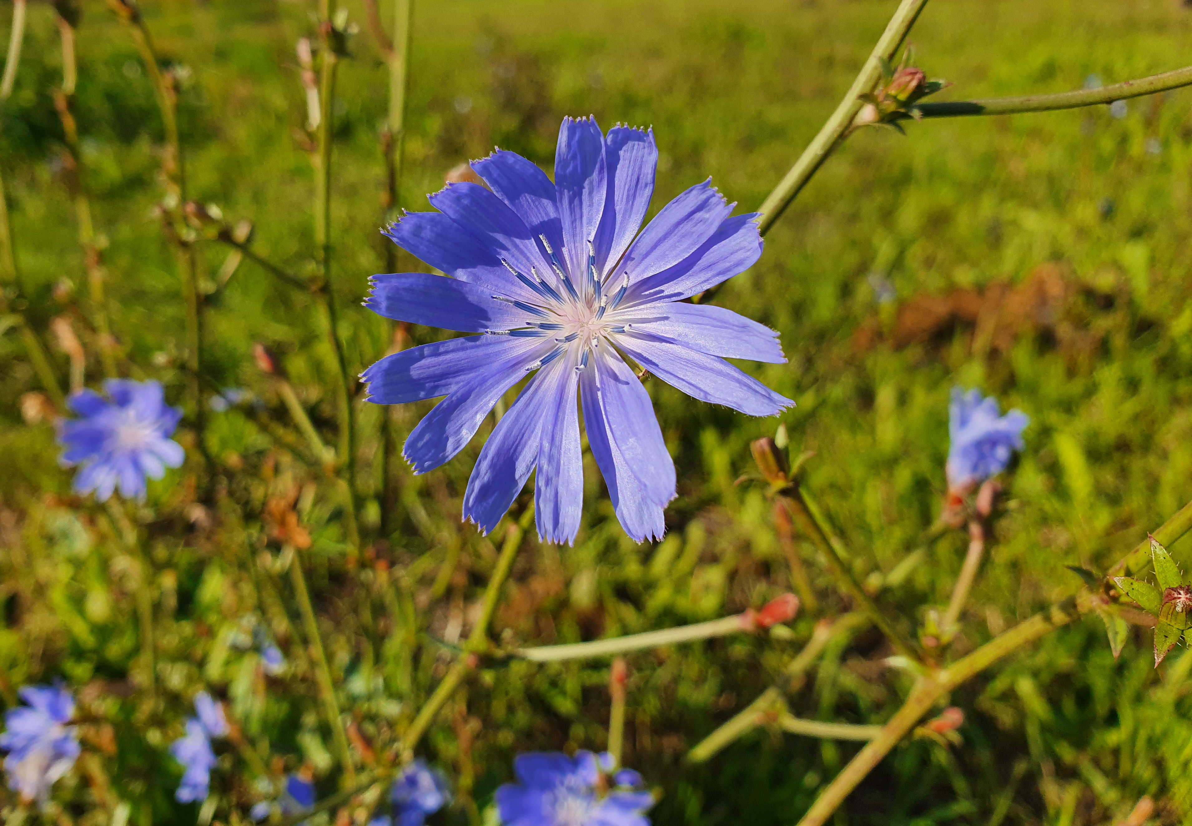 Seit zwei Jahren versuche ich eine kräuter- und blütenreiche Weide zu etablieren, um mehr Artenvielfalt innerhalb der Pflanzenzusammensetzung und in der Folge natürlich auch bei Insekten, Brutvögel oder Fledermäusen zu erreichen. Da eine Neueinsaat aus verschiedenen Gründen nicht in Frage kommt, kann man nur auf das setzen, was die Samenbank des Bodens hergibt. Dabei braucht die Entwicklung von Artenvielfalt Zeit und Kontinuität, sie lässt sich nicht von heute auf morgen erzwingen. Deshalb muss ich mich in Geduld üben und an den kleinen Dingen erfreuen wie beispielsweise einzelne Blühaspekte mit Weißer Lichtnelke, Flockenblume, Wegwarte, Rainfarn oder Strandkamille: