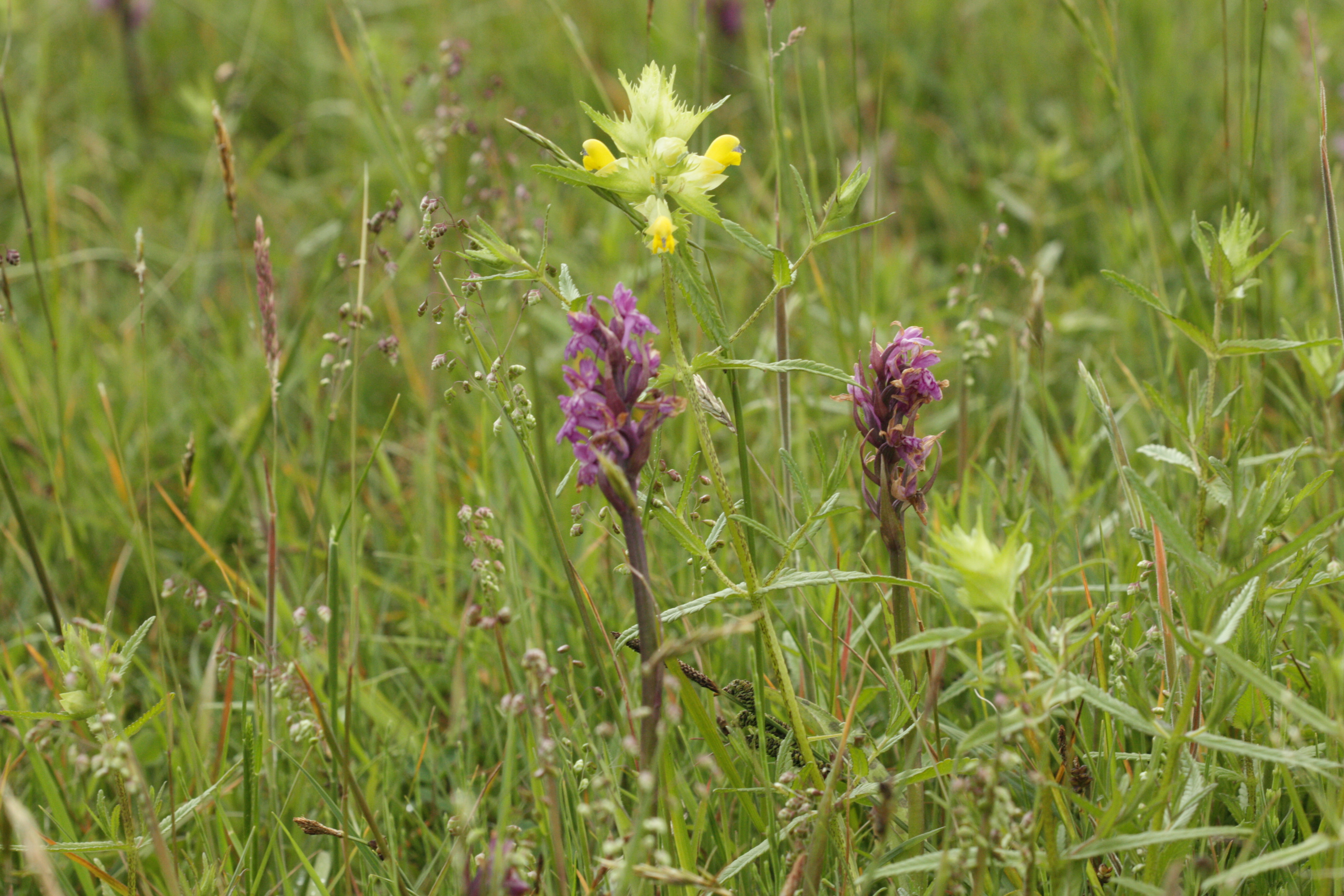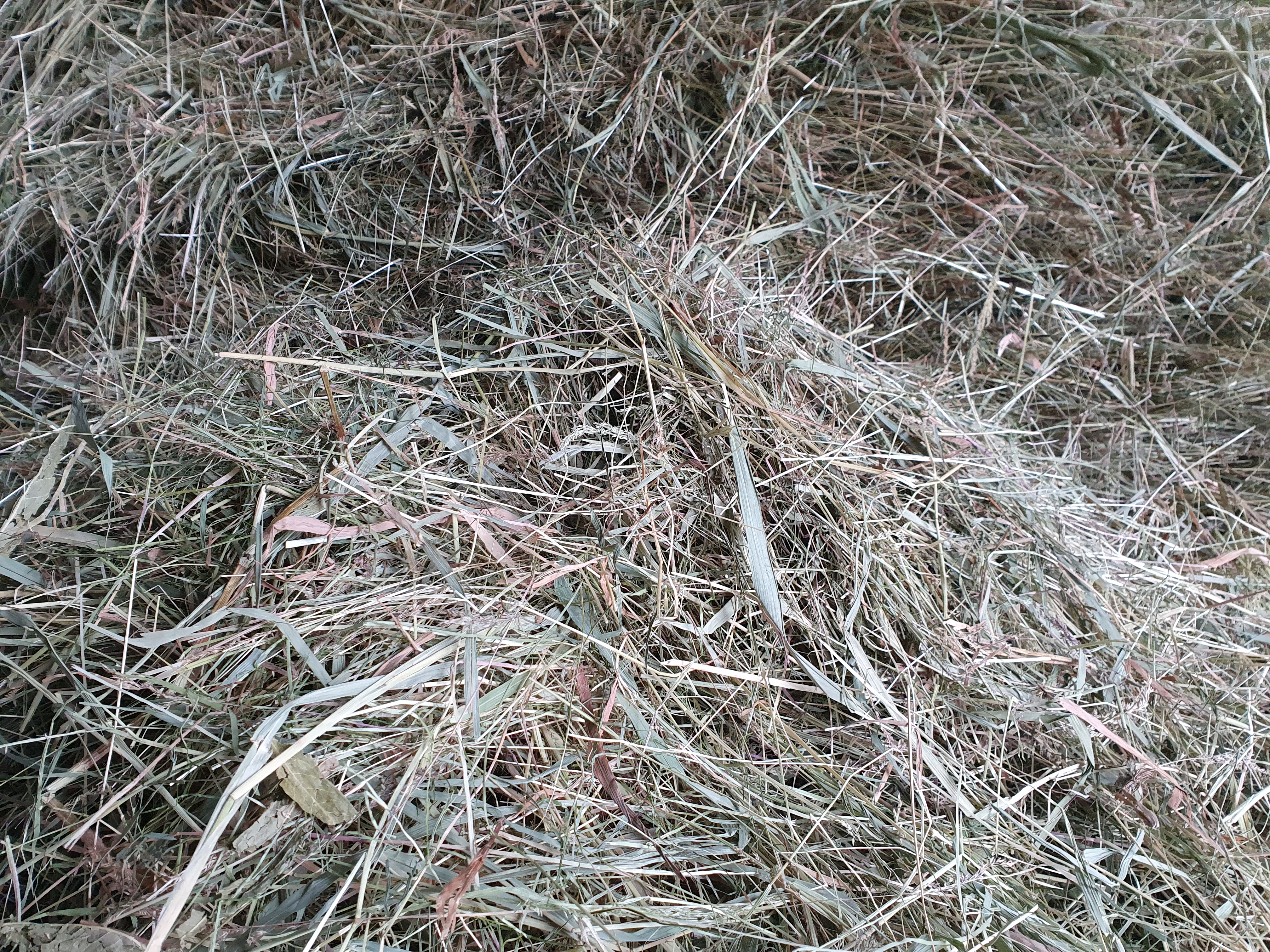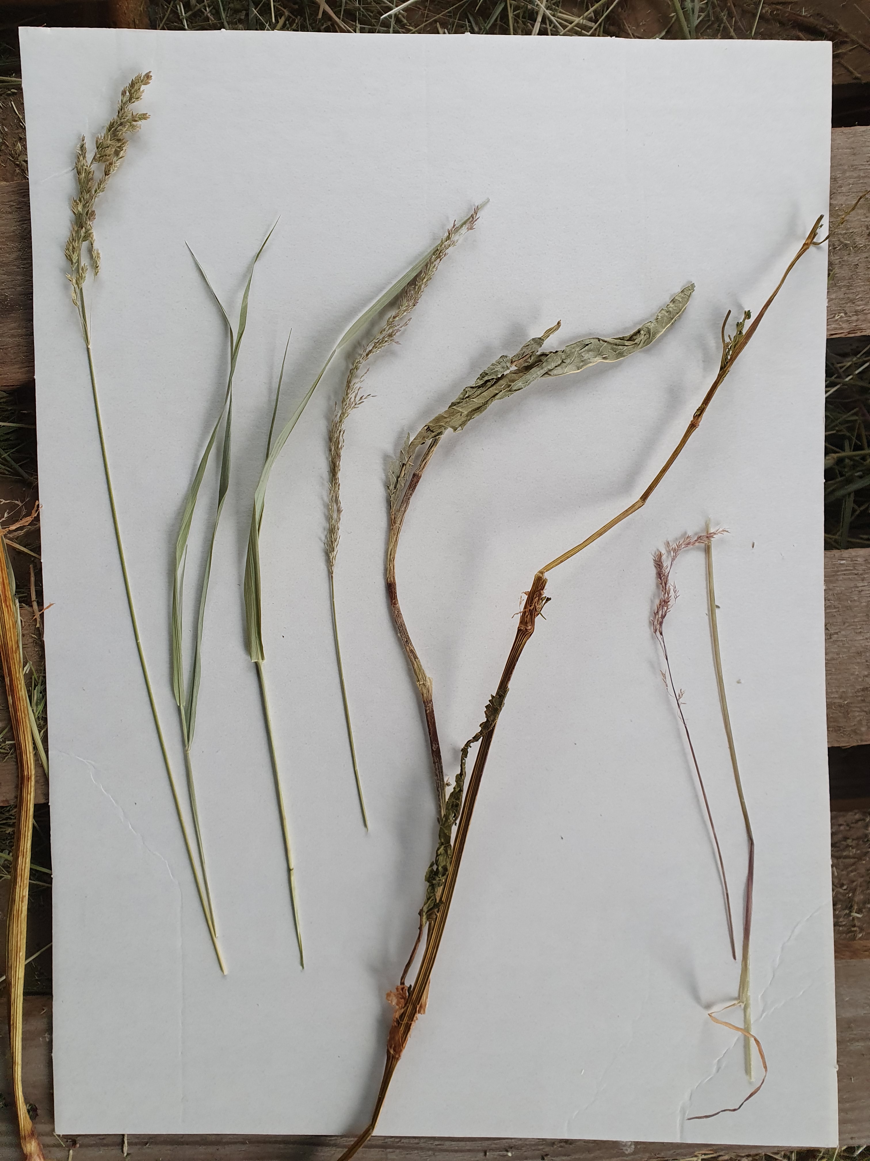 Aber wenn man sich gleichzeitig die Artenzusammentzung des Heus anschaut, kommt man in unserem Beispiel auf nur fünf Arten: Gemeines Rispengras (Poa triviales), Weißes Straußgras (Agrostis stolonifera), Wasser-Knöterich (Persicaria amphibia, Landform), Ampfer (Rumex spec.) und Wolliges Honiggras (Holcus lanatus).