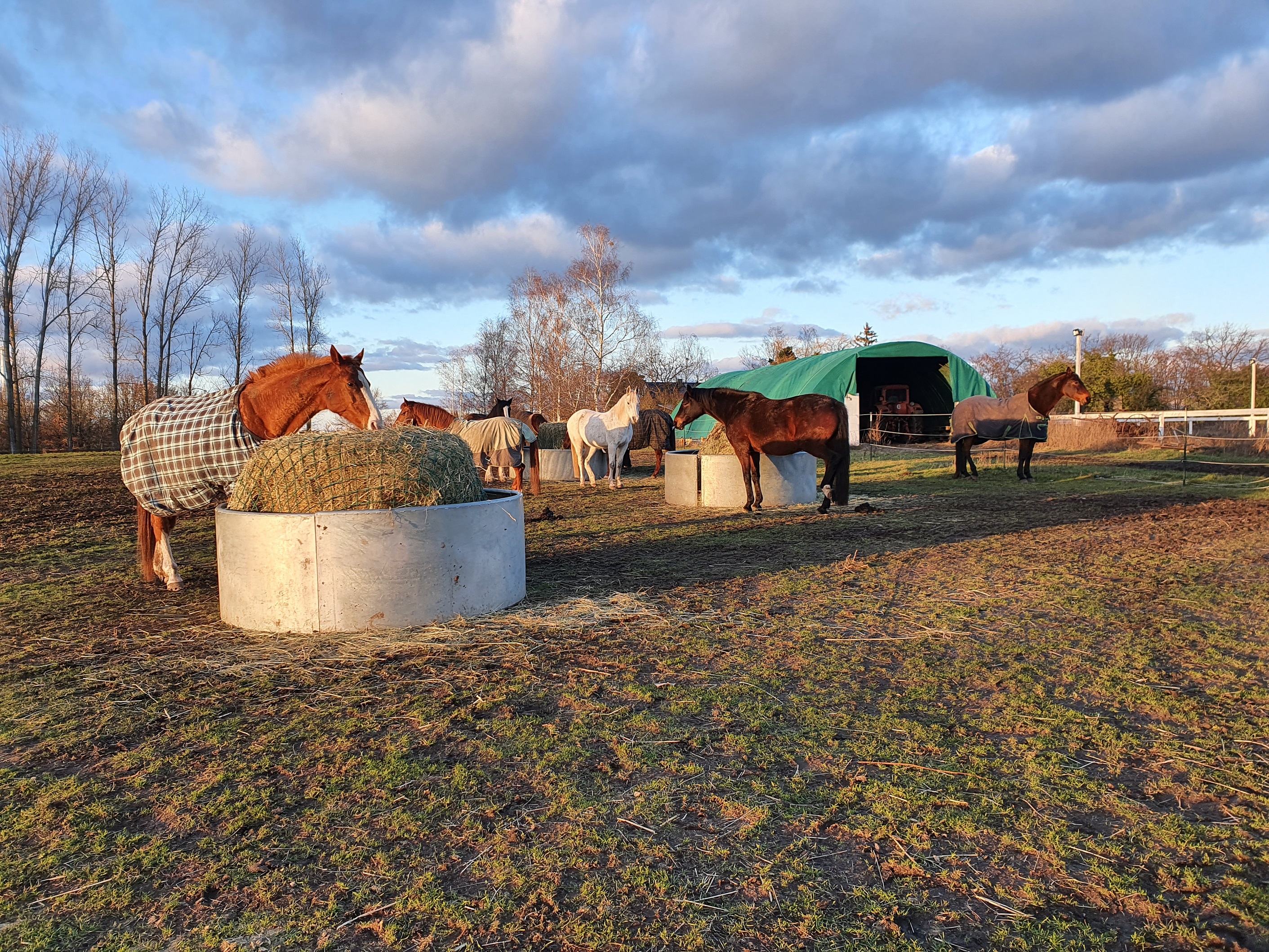 Ich freue mich schon auf den Sommer, wenn man das Heu weglassen kann und die Pferde wieder vollständig auf der Weide stehen. Ich hoffe, dass der Sommer nicht wieder so heiß und trocken wird, so dass die Wiesen vertrocknen und wir die Heuraufen wieder hinstellen müssen. Aus meiner Sicht, ist die Weide die natürlichste Futtergrundlage für Pferde.