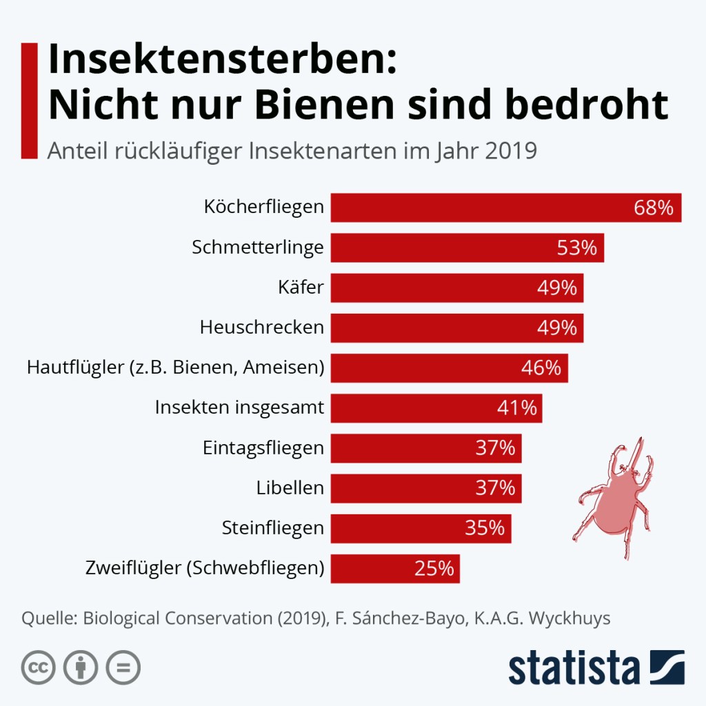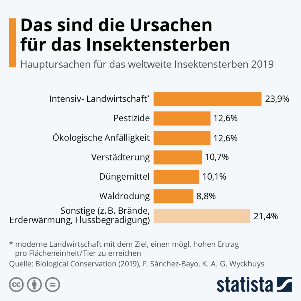 Eine der Hauptursachen für das Insektensterben, bei dem vor allem auch Tagfalter betroffen sind, ist die Intensivierung der Landwirtschaft bei gleichzeitger Aufgabe nicht mehr rentabler Flächen wie Feuchtwiesen oder Trockenrasen. Dadurch gehen artenreiche Wiesen und Weiden verloren und mit ihnen ganze Artengemeinschaften.