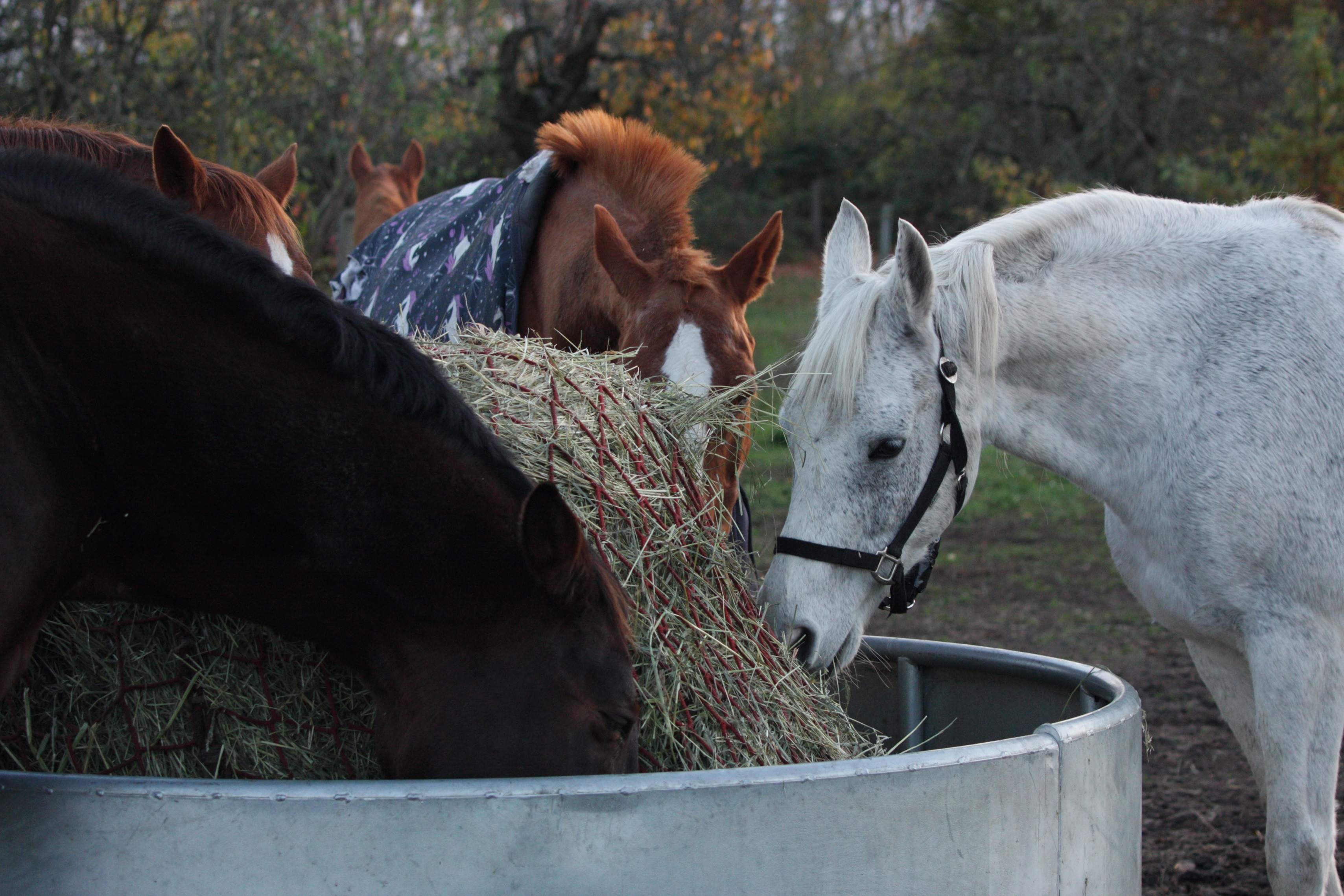 Wir haben das Glück so viel Weideflächen zu haben, dass wir nichts imitieren müssen und unseren Pferden ganzjährig die Möglichkeit geben können, selbst zu entscheiden wo und wann sie grasen, dösen, schlafen, spielen oder auch an Sräuchern knabbern möchten. Aber im Winter bekommen unsere Pferde zusätzlich zur Weide Heu ad libitum und es hat sich schon mehrfach mit Hilfe des GPS-Trackings gezeigt, dass dann die Laufwege kürzer werden, weil sich die Pferde die Nahrung nicht mehr zusammen suchen müssen.