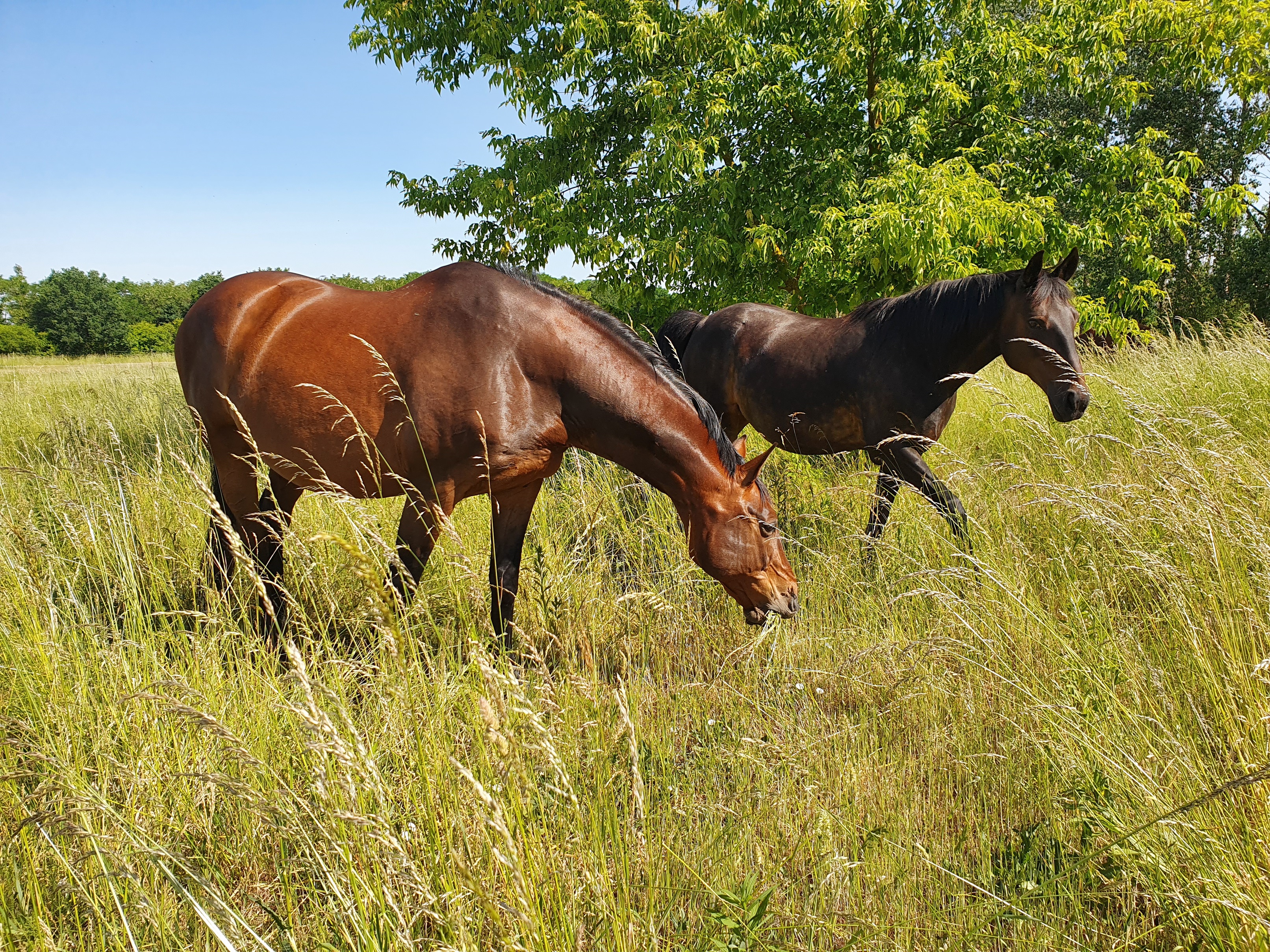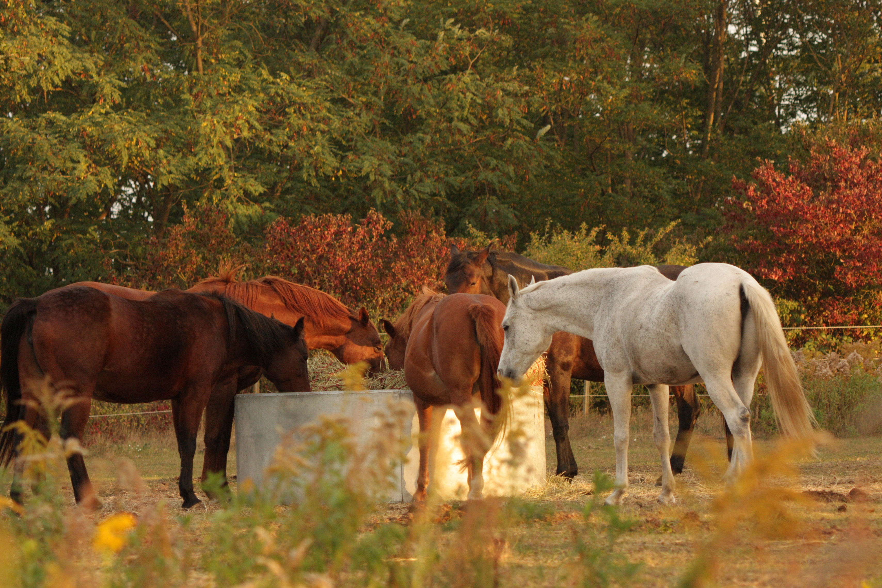 Diese beiden Absätze haben mich dann wieder in unserer Art der Pferdehaltung bestätigt, auch wenn sie nicht für alle Pferde geeignet ist. Unsere Pferde können jederzeit selbstbestimmt fressen, dösen, schlafen, spielen, erkunden. Wir haben keine vorgegebenen Laufwege in Form von „Trail-Labyrinthen“, keine Fresszeiten oder sogar Futterautomaten, um das zu imitieren, was in der Natur der Pferde liegt: Langsame Nahrungsaufnahme über den Tag und die Wegstrecke verteilt in Form von Grasen 😉