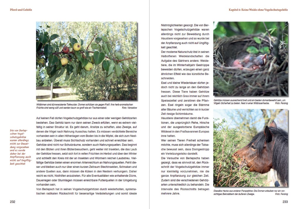 Und hier noch zwei Auszüge aus dem Buch Pferd und Gehölz mit freundlicher Genehmigung des Starke Pferde Verlages: