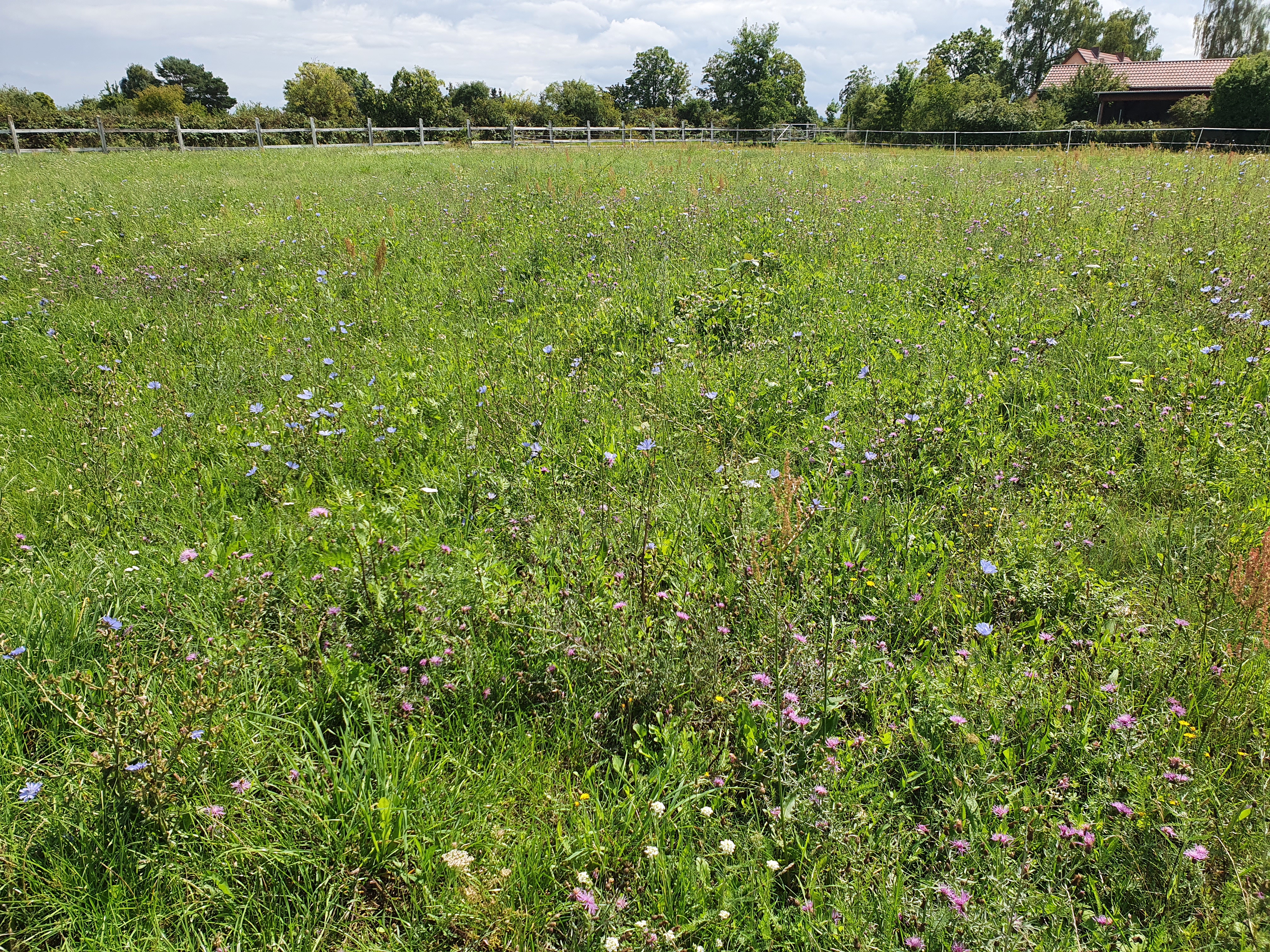 Und natürlich ist eine arten- und kräuterreiche Weide auch für unsere Pferde gesünder als die üblichen, (meist) stark abgegrasten Weidelgras-Weißklee-Weiden.