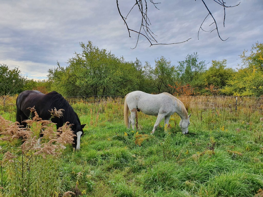 Wir sind eine kleine Haltergemeinschaft mit zwei Fjällrindern und sieben Pferden. Unser Ziel ist eine artgerechte Pferdehaltung mit der Förderung von Artenvielfalt zu verbinden. Dazu gehöhren unter anderem die Mischbeweidung mit Rindern, selektive Entwurmung, der Verzicht auf Chemie, Mineraldünger und die Förderung von Strukturvielfalt beispielsweise in Form von aufkommenden Gehölzen auf den Weideflächen.